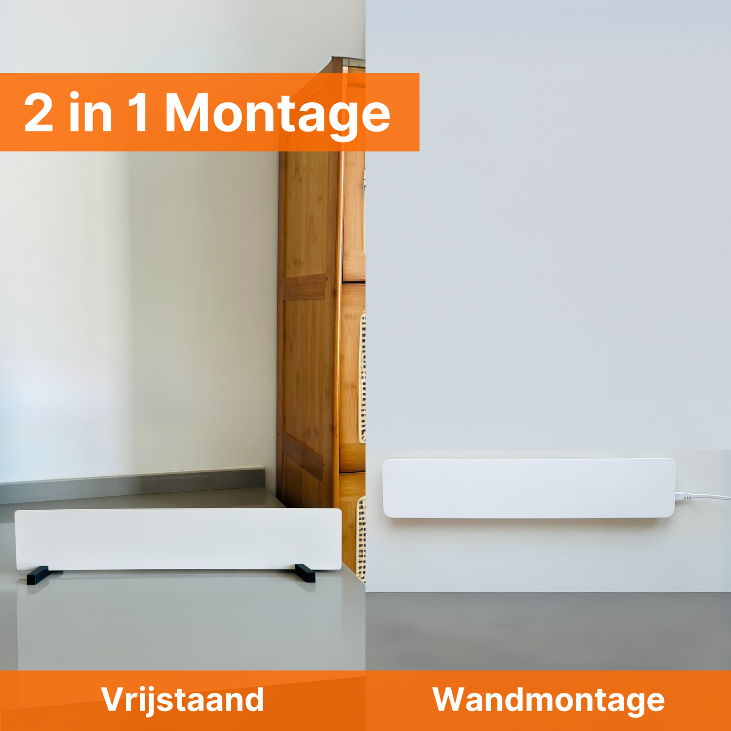 Onze schimmelverwijderaar kunt u zowel vrijstaand gebruiken als eenvoudig aan de wand monteren. Dankzij deze flexibele 2-in-1 montage past de schimmelverwijderaar in elke ruimte en biedt hij een doeltreffende oplossing tegen schimmelvorming.