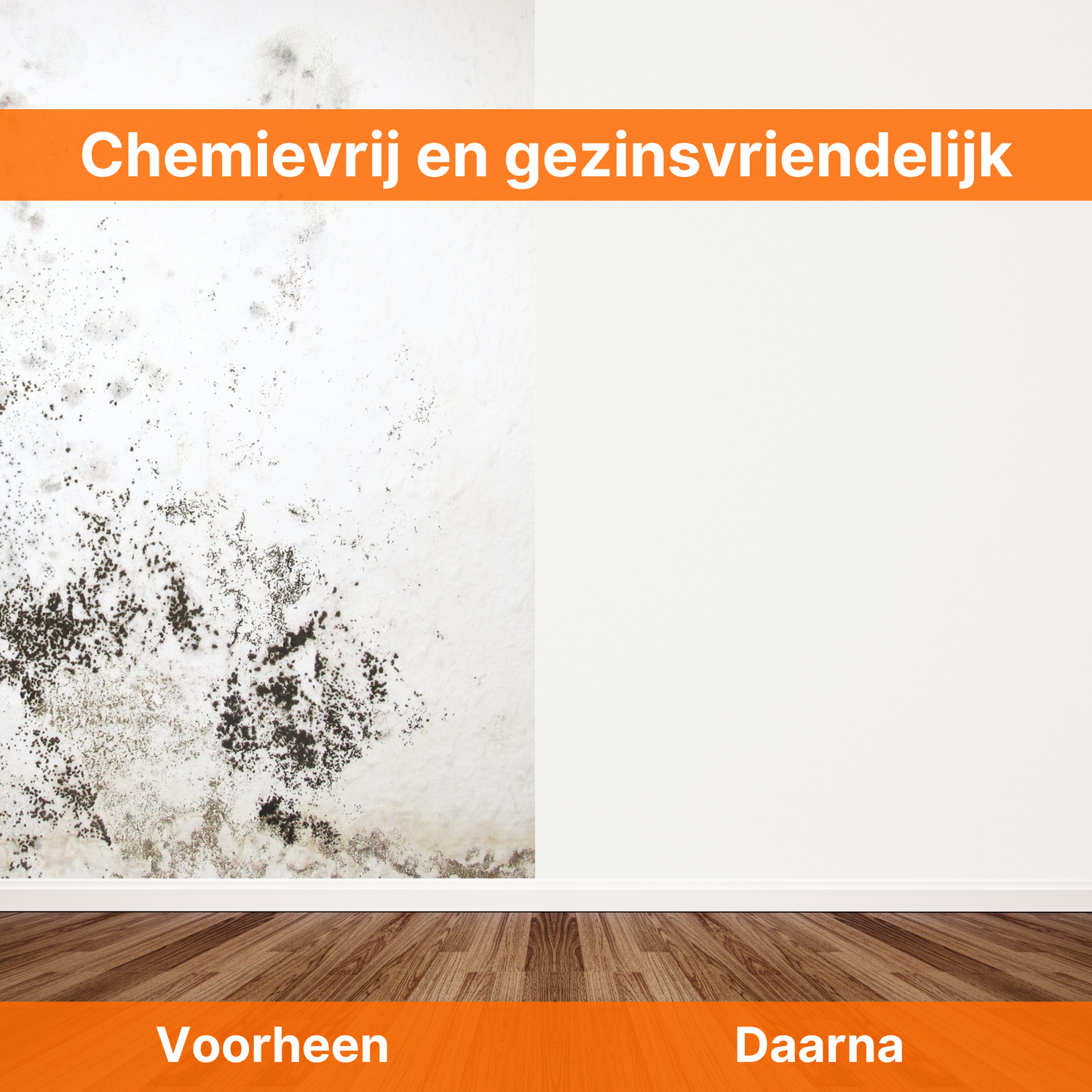 Onze schimmelverwijderaar verwijdert effectief schimmel zonder het gebruik van agressieve chemicaliën. Dat maakt de oplossing veilig voor gezinnen, kinderen en huisdieren. Met de schimmelverwijderaar creëert u snel een gezonde en schone leefomgeving – zichtbaar resultaat van ‘voorheen’ naar ‘daarna’.